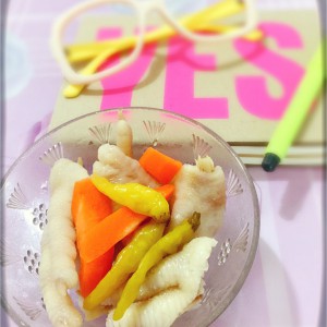 锅里放足够的水,鸡脚冷水下锅,放姜片,一小勺盐,3勺料酒,煮到断生去浮末,不用太烂,有点嚼劲更好吃!