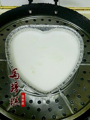 将面糊倒入模具。大火烧开水,放入锅中,转中大火蒸30分钟。模具越大蒸的时间越长。