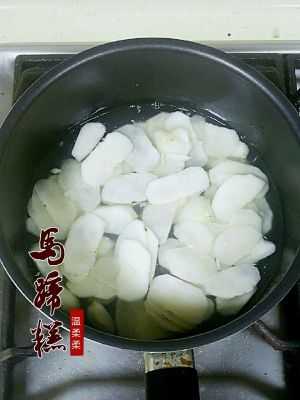 用一半的水将冰糖煮融化,有朋友问可以用其他糖吗?答案是可以的,只是做出来的色泽与味道有点区别,用冰糖做出来的马蹄糕比较剔透。爱吃甜的朋友可以适量加糖。