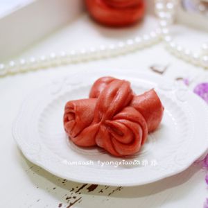 除了猪油之外,所有的材料混合均匀,放进面包机揉成光滑的面团。馒头要想蒸出来有光滑的表面,口感好,面团一定要揉到位