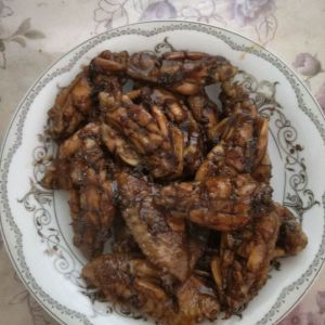 将可乐倒入锅中,超过鸡翅即可,盖上盖子炖到收汁,出锅