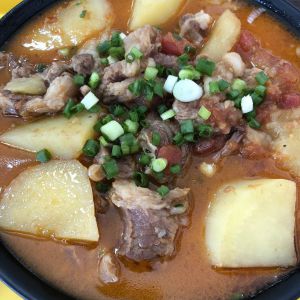 起货烧油,下八角香叶桂皮小火,接着下一半番茄丁翻炒出茄红素,然后加入牛腩一起翻炒,下 盐 少许糖 生抽耗油,翻炒均匀直接倒进高压锅,加热水淹没牛腩,高压锅煮开15至20分钟即可,这里需要注意一下,有小孩老人吃的话呢,压25分钟至30分钟比较软烂。最后把剩下一半的番茄炒出茄红素,然后下土豆,把牛腩倒下锅里一起煮10分钟就能完美出锅啦!