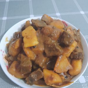 牛肉切丁(超市帮忙切的)放入锅中,倒入料酒,水开后有白沫,撇开白沫,牛肉盛出待用