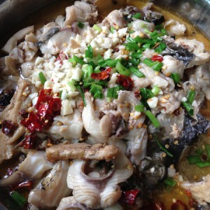 鱼肉放入鱼汤中,大火,鱼肉迅速变白,捞出!(图我粗心忘记拍了。。。),最后撒上葱花蒜末干辣椒花椒,另起锅热油浇上,刺啦刺啦响,香味扑鼻哇~~~(油要多些哦)