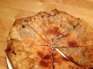 然后压扁,擀成薄饼,平底锅里多放些油煎熟就完成了