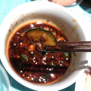 调蘸料。(生抽老抽、白醋白糖、花椒油辣椒油、盐和鸡精)
