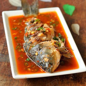 两茶匙淀粉加一饭碗清水和匀淋入锅中搅匀后放入鲫鱼,不停将汤料浇鱼身,待入味后先将鱼码盘,端起菜锅从鱼身中间位置缓缓淋入汤汁