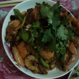把炸好的虾放入锅里翻炒,放点生抽,盐,鸡精,少许白糖,料酒,香油,孜然粉,后面觉得花椒不够麻的话可以在起锅前在放点花椒油。