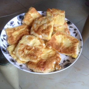 馒头放蛋液里滚一滚,沾满蛋液后下油锅,煎到两面金黄色,就可以出锅了!