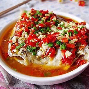 最后在葱花上浇上响油,一道地道的湘菜剁椒鱼头就做好了!