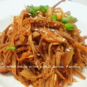 搅拌均匀,撒芝麻,葱花即可(烧鸡本来是有咸味的,所以我没有再放盐,大家可以自行添加或减轻调料总量)