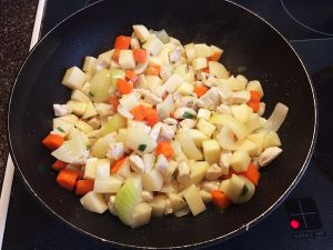 最后放入胡萝卜和土豆丁