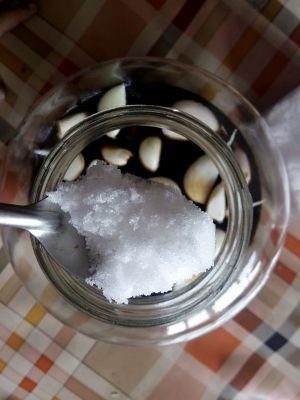 好了,放到阴凉处,两个星期左右就可以吃了,(阉蒜的汤汁还可以做蒜香糖醋排骨,味道很不错的,还不浪费)