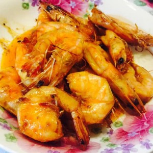 锅中多放些油,油热放入大虾,之后加盐翻炒至变全红后,放入糖要多放,加味精翻炒至微焦出锅