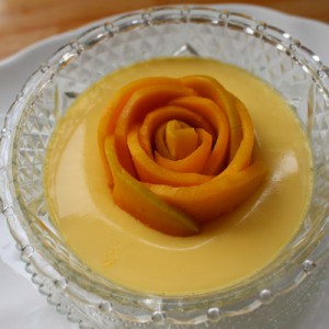 把做好的芒果花放入晾凉的“牛奶布丁“中间。