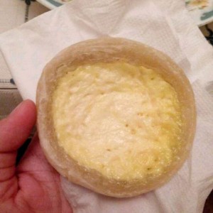 解冻蛋挞皮,这个很重要,第一次做时没解冻就放进微波炉了,才导致"死面饼"饼皮的诞生,汗