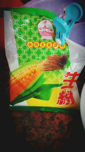 把米粉跟玉米淀粉以3:1的比例混合起来!我不知道具体的比例,这里是我抱着试试的心态做的,不过,结果还不错哦!