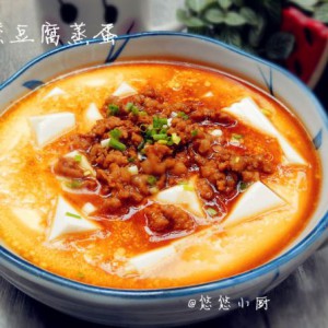 浇在蒸好的鸡蛋豆腐上,最后撒上葱花