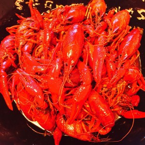 炒好的小龙虾色泽诱人,麻麻辣辣的装盆开吃。
