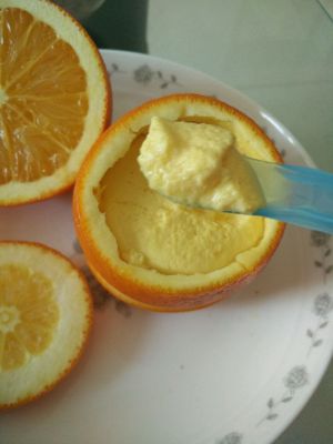 把橙汁和蛋黄搅拌!倒入橙子壳中!上锅蒸就行!记得要盖上盖子