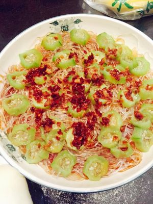 1、将细粉丝用开水浸泡;2、同时开始剥蒜头,喜欢蒜味重的可以多一些,我这里5颗蒜瓣的量,洗净切成末;3、丝瓜先别动,皮刨早了容易黑,等会在管它…4、平底小锅起油锅,倒少许油,将蒜末倒入锅中小火煎(我是个急性子,所以一会大火一会小火)前提是不能焦,煎到金黄色后连蒜油一同乘出来;5、开始洗丝瓜(这里是一根的量)刨皮后切成厚片;6、将泡好的粉丝盘入盘底,将切好的丝瓜摆在粉丝上,在将煎好的蒜末和蒜油平均浇在上面;7、最后最关键的是淋上“蒸鱼豆豉”(吃清淡的这样即可,因为个人觉得丝瓜有点淡,粉丝还行,重口味的还能再撒点盐,一点点就好);8、放入已经烧开的蒸锅里蒸10分钟(温馨小提示:之前看过报道说自来水在烧开的过程中容易产生氯的蒸发,因此蒸东西最好还是建议大家水开后放入)