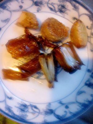油温降到220的时候放入辅料1,开小火炸到金黄,捞出来后关火