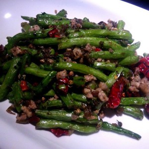 锅中留少许底油,不要太多哦。下姜蒜辣椒花椒一起煸炒出香味后,放入肉末煸干并放入老干妈与豆瓣酱,然后下四季豆翻炒片刻,加入料酒.盐.鸡精.味精.糖,最后撒上葱花!大功告成^_^