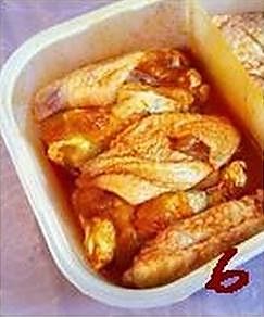 将搅匀的料汁倒入盛放鸡翅的容器中;