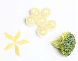 将姜切片、西兰花削成小朵、葱切段。