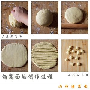 【酒窝面的制作过程】:饧好的面团放在案板上,用手将面团揉几次。