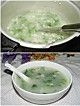 最后,加入面糊,煮开,慢慢搅动。加入盐、味精、香油调味。
