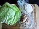 准备好食材,圆白菜5片,猪肉馅150克,饺子皮适量。