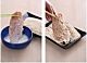 将干淀粉加入清水调和成浓水淀粉。把鸡肉放入水淀粉中双面沾满,然后再放入面包屑中双面沾满。