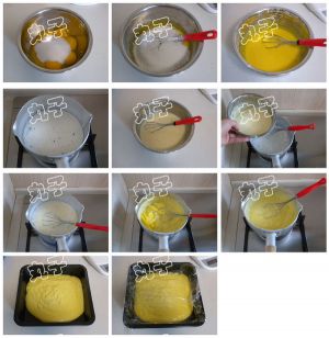 将3的混合好的面糊全部倒入锅中,开大火用打蛋器迅速混合均匀,要不断的搅拌,一直混合到沸腾,出现光泽且华润即可;