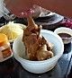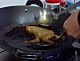 風乾后的鴿子直接用油淋,淋油后的皮脆脆的。