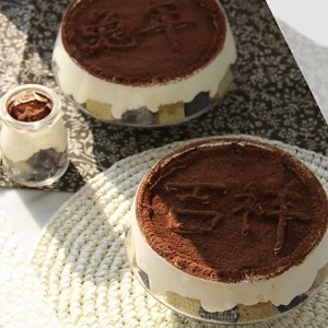 填上马斯卡彭乳酪糊,小圆口裱上字(写中文真的很奇怪啊。。。。)