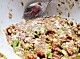 生姜剁好之后放入肉馅,和入刚买的包子饺子馅儿调料、鸡精、老抽、生抽、香油、大豆油,葱花,还有姜末,开始搅拌,使劲儿搅匀了,放那腌着。