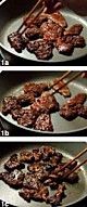 置厚身平底易洁锅于中火上,锅热时下2茶匙油搪匀锅面,逐片放下牛柳,煎至一面约八成熟便翻至另一面再煎至九成熟,移出排在碟上让余热透入牛柳内使继续成熟。