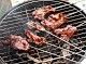 把叉燒肉用叉子串好,放至燒烤爐里明火炭燒。