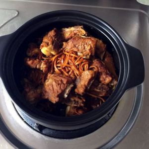汤汁收干后,关火盖上锅盖焖十分钟,排骨更入味一些;