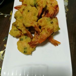 小火慢炸,2面金黄捞出盘子,等过了10多分钟,过滤下油,重新下锅复炸一遍,这样凤尾虾会很酥脆。要特别注意,要小火炸,大火很容易糊。