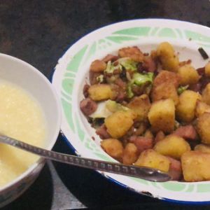 馒头改刀成块 红肠切小块 鸡蛋打散加半个鸡蛋那么多的凉水,蛋液加少量盐后,将馒头块倒进蛋液拌匀。(家里只有白菜,还可以放青椒,胡萝卜,洋葱,各种青菜一起。)