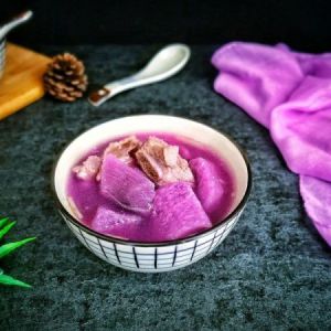 2小时候开盖,倒入紫面薯大火烧开后继续煲25分钟左右。