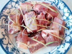 寸排洗净放盘里,倒入少许盐、糖、生抽、花生油,春砂仁洗净用刀拍碎,倒入,拌均匀。洒上姜丝。