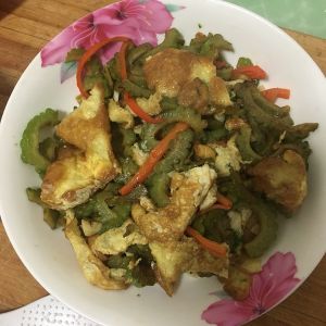 鸡蛋拿出来,加点油,下入苦瓜炒。