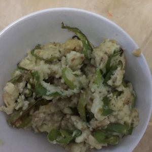 将辣椒切丝,放入盐,把面粉放入碗里,加入水,做成面糊,稀一点,加入一个鸡蛋,搅拌均匀,放入一点盐