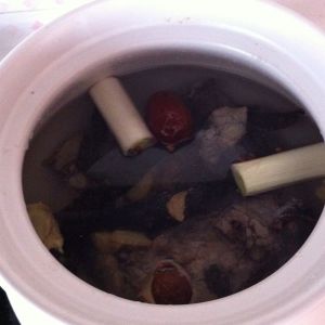 把焯过水的鸡块,用清水冲干净浮末,放入砂锅。加入葱姜,草果一个,红枣一个,参片少许。煲两个小时,出锅前十分钟加盐调味,即可。