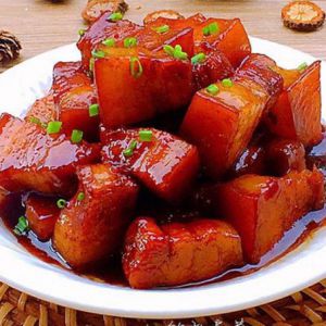 加入水没过肉,加盐,糖,葱打成结放里面,加料酒,糖要多一点,大概8勺,也可以最后尝了再调味。盖上锅盖水开后小火炖。中间注意是不是糊锅。