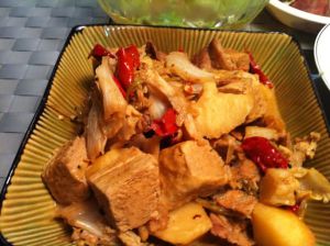 一道辣香扑鼻鲜辣下饭的辣烧冻豆腐白菜就完成了
