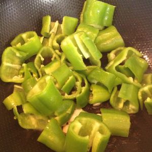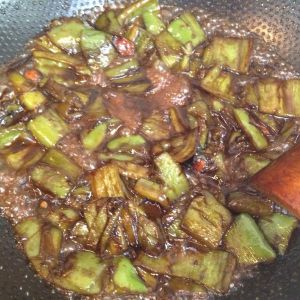 待青椒出现虎皮、变软时放入生抽、醋、糖、盐煸炒边刻即可出锅。